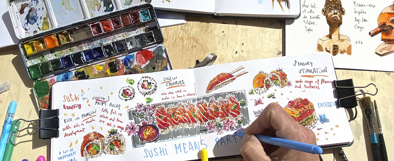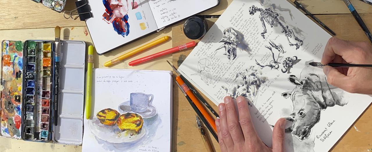 Aprenderás todos los pasos para crear sketches frescos y espontáneos. Analizaremos las diferentes técnicas y los materiales más empleados. Crearemos con plumillas, rotuladores, acuarelas, tinta china, gouache y cualquier otra técnica que evoque la acción directa.